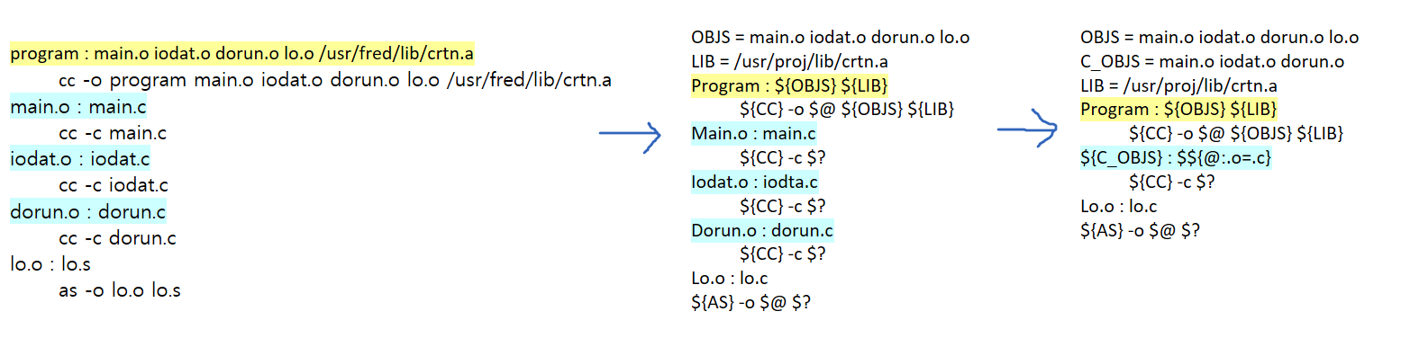 ${CC} : C컴파일러. '$cc' 명령과 같다.