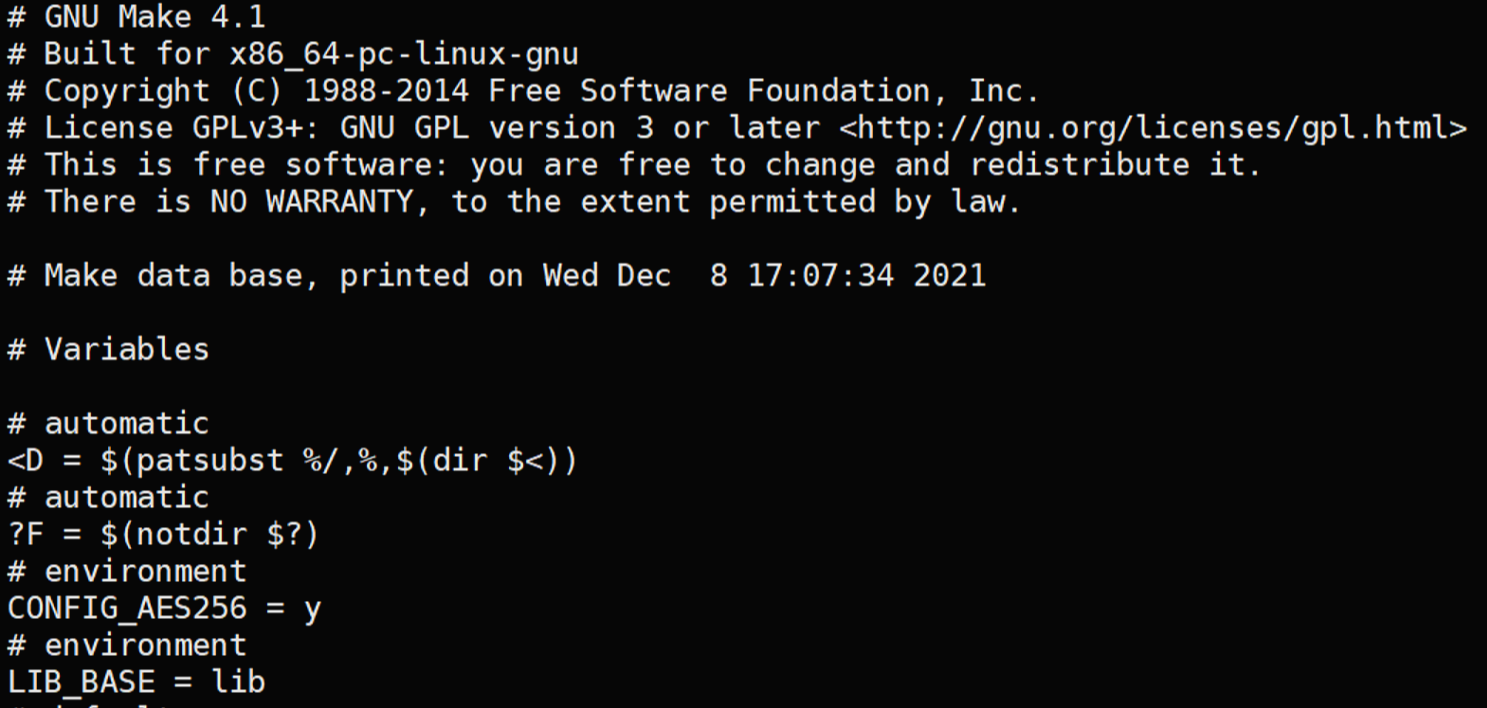 make에서 p옵션을 주면 다음과 같이 정의된 매크로들을 모두 보여준다.