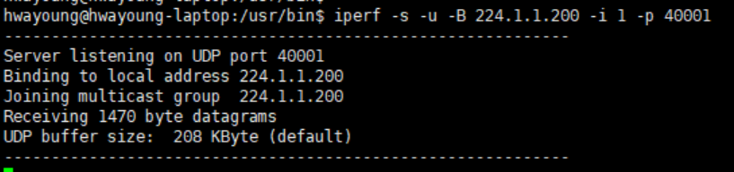 PC A에서 multicast 데이터그램을 전송하고, PC B에서 iperf를 서버모드로 동작시켜서 수신을 확인한다.