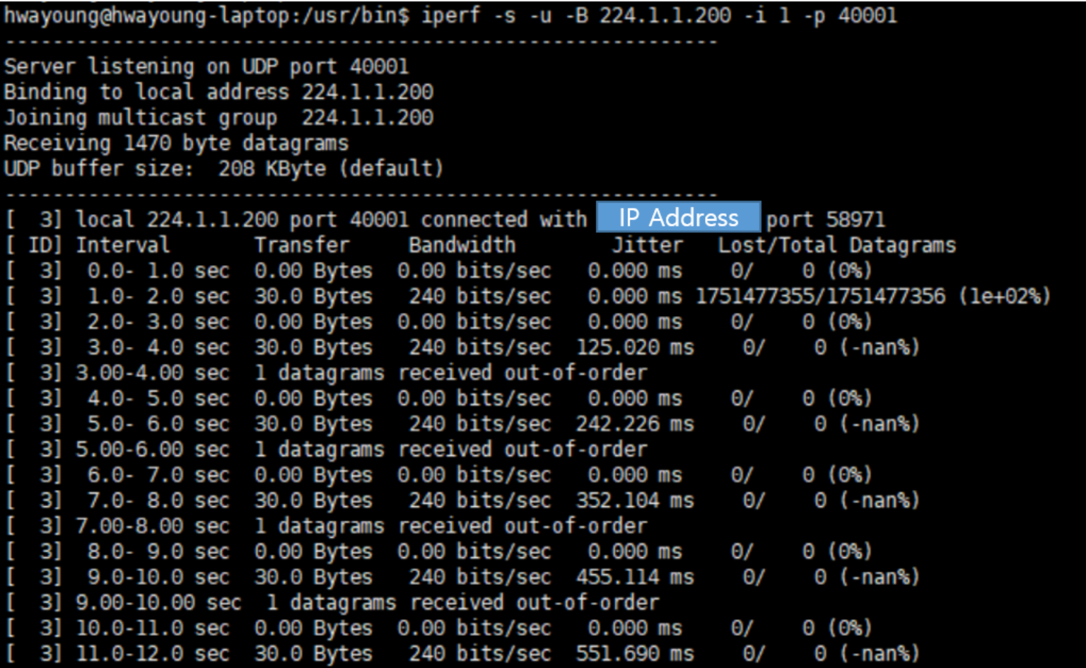 UDP Multicast 수신 테스트