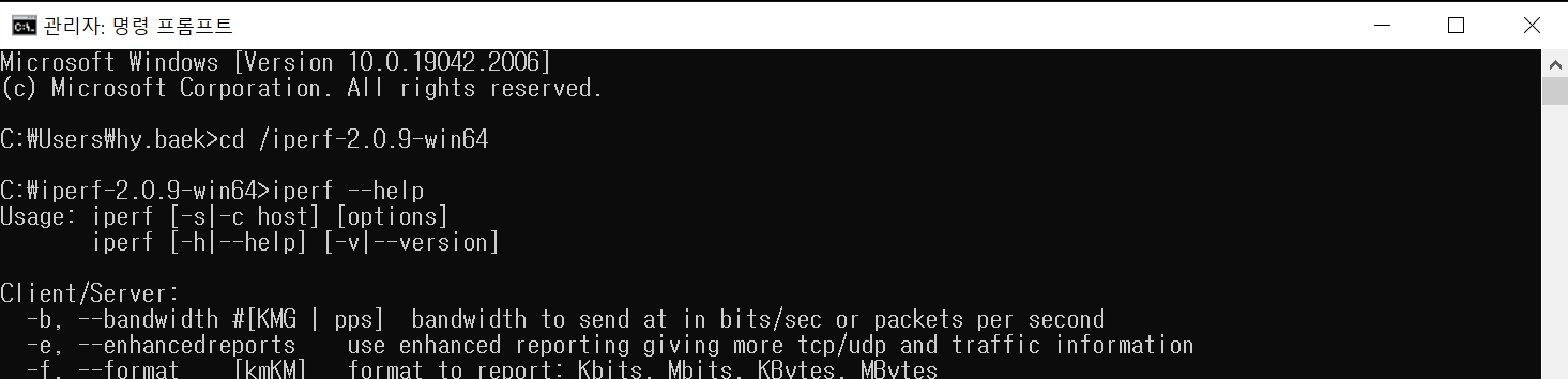 iperf 사용법이 나온다면 설치가 잘 된 것이다.
